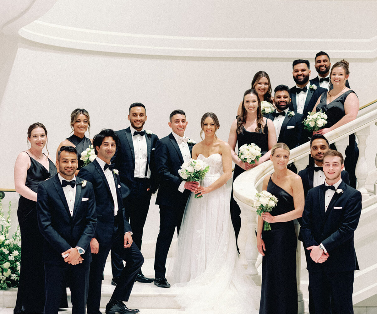 Jade, a business consultant from Minneapolis, and Aric, a collegiate basketball official from Chicago, were introduced by Aric’s sister, who Jade worked with on staff for the Georgetown women’s basketball team. Jade and Aric hit it off immediately, and three years later, at Aric’s sister’s wedding, she faked the bouquet toss, handed the bouquet to Jade, and Aric proposed.
