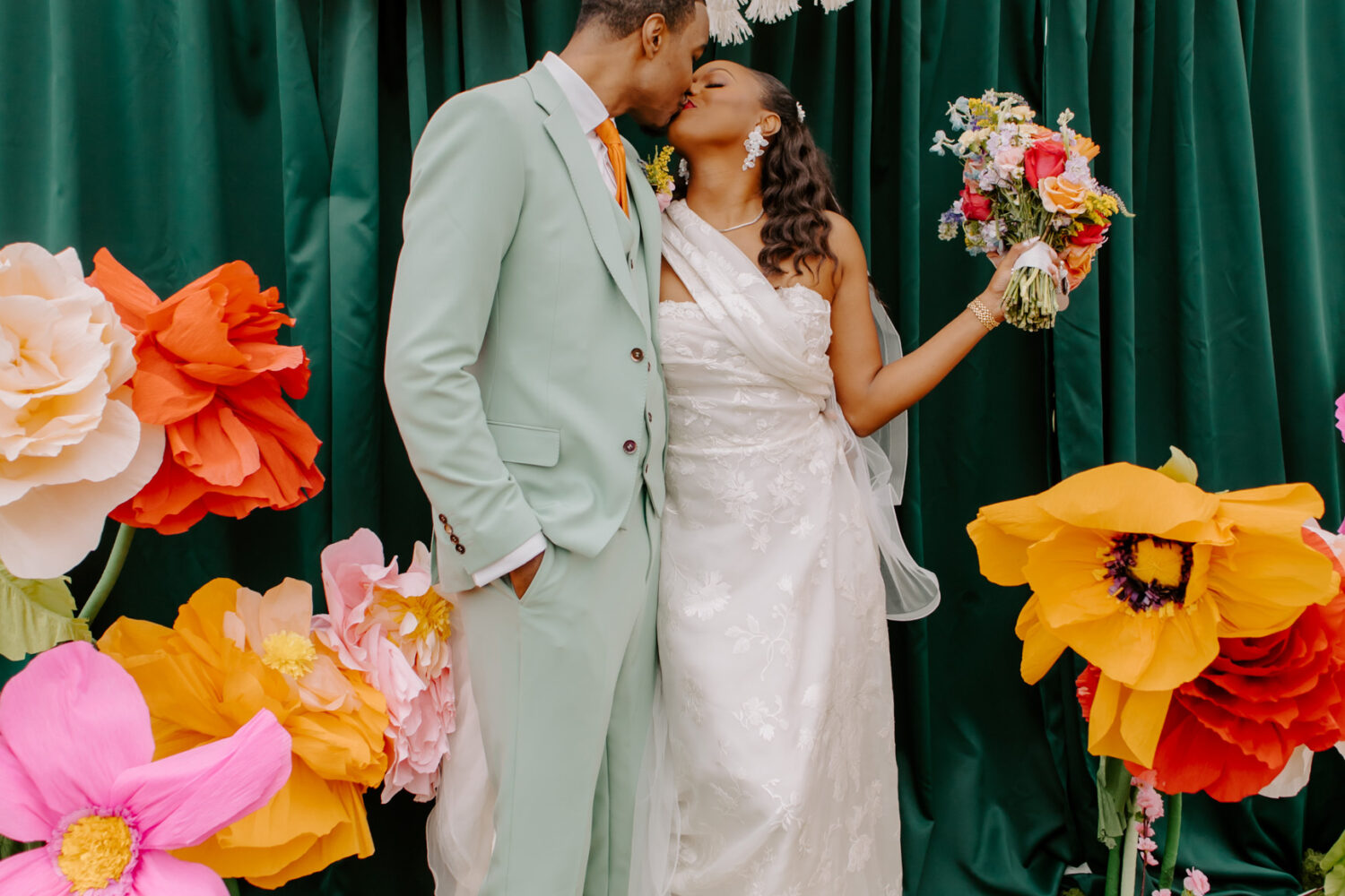 At their spring-themed wedding last June, the design included light colors—including lilac, gray, and cream—and floral patterns. Food was important, so they wanted for a restaurant venue, and chose La Vie, where they dined on brunch—including chicken and waffles, shrimp and grits, steak and eggs, Greek salad, seasonal fruit, and more—with a waterfront view. Following the big day, the newlyweds honeymooned in the Bahamas.
