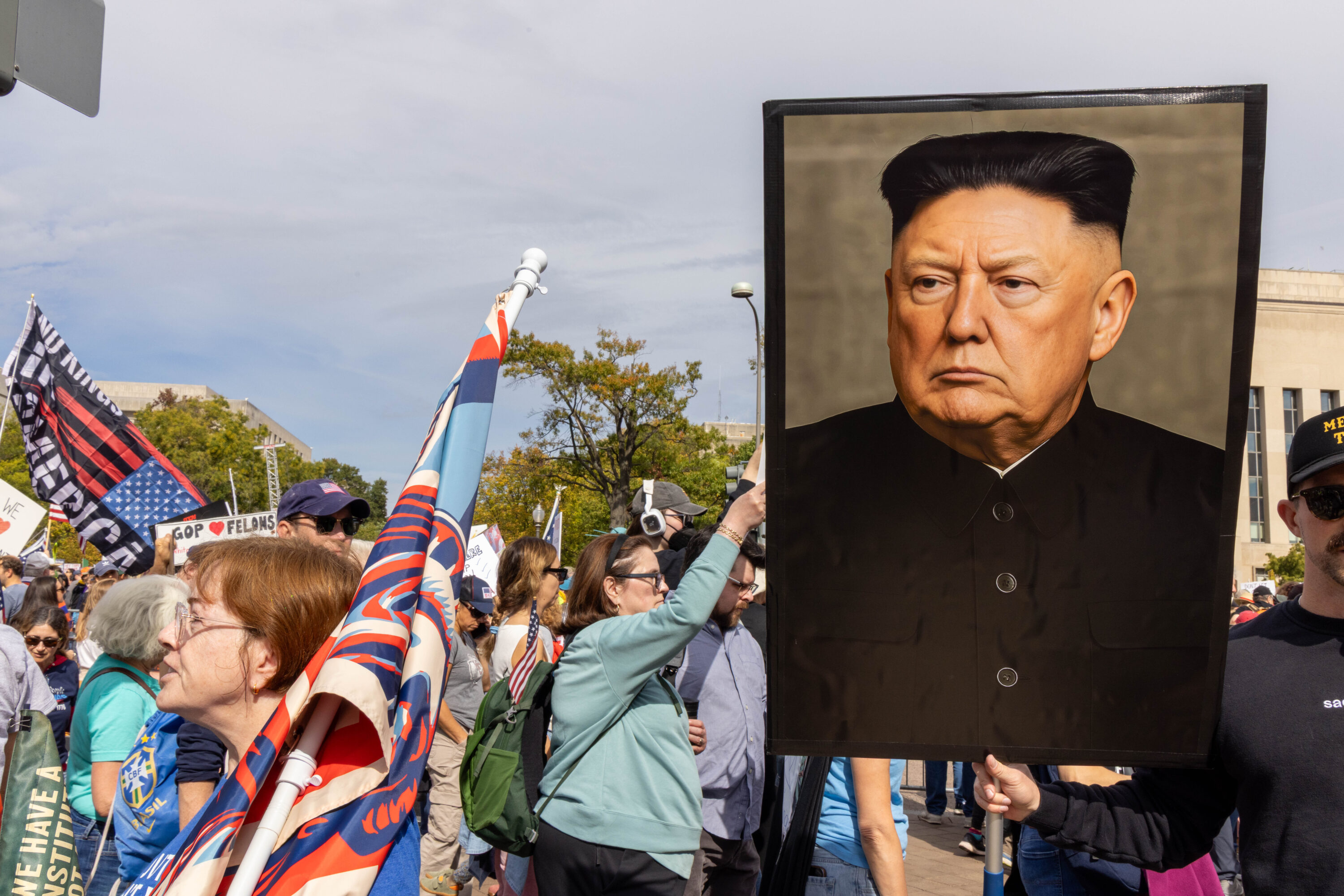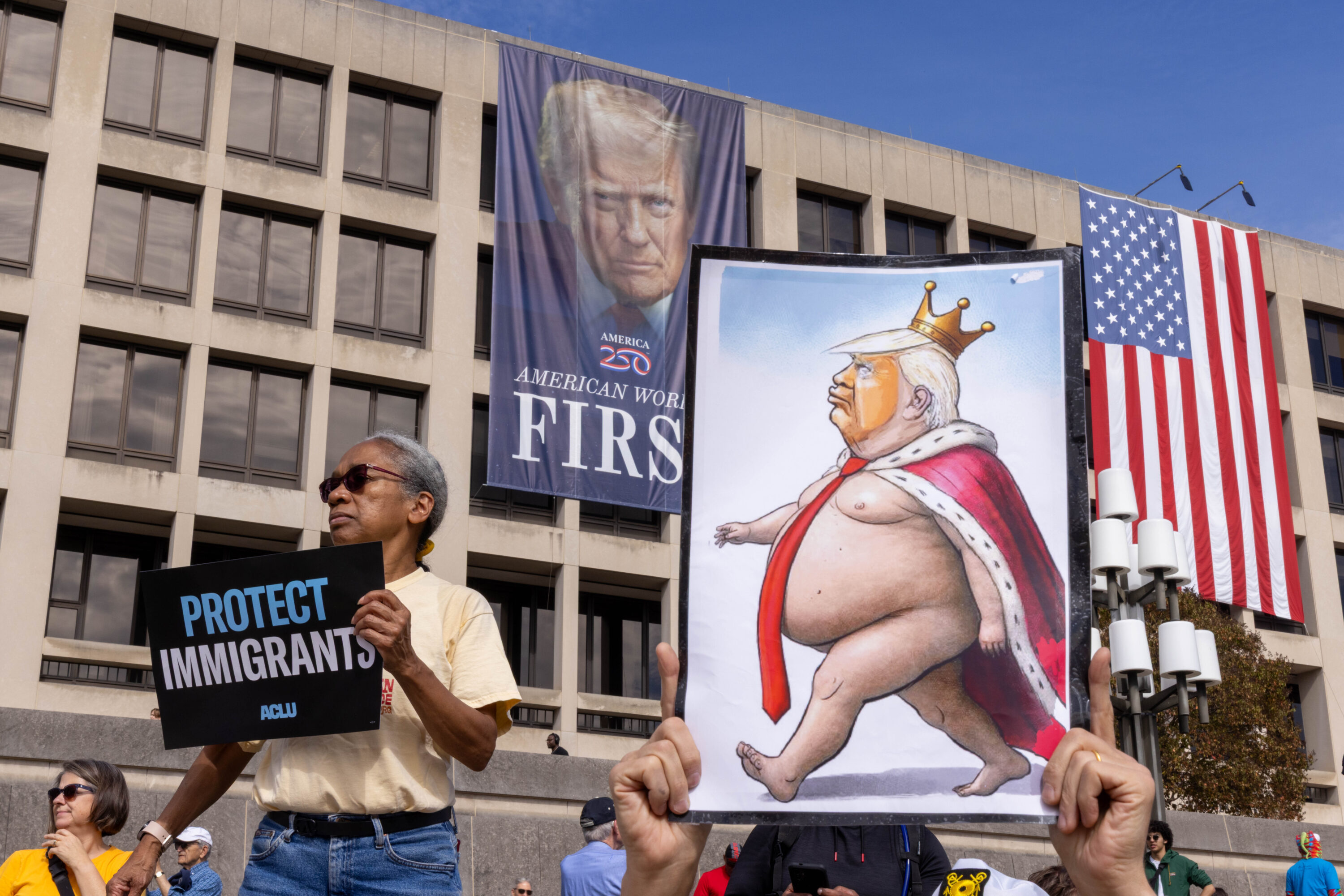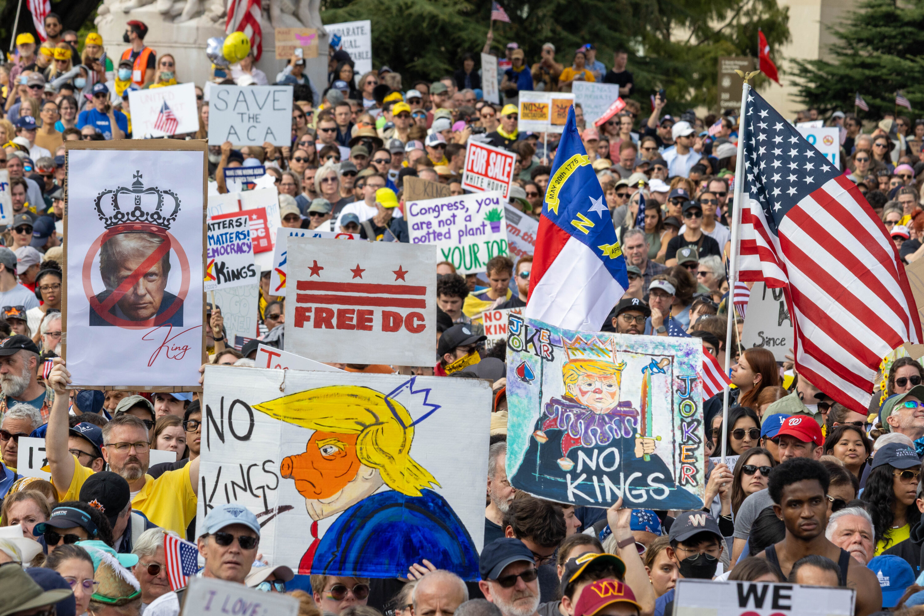 Carrying signs that were at times deadly serious (“Evil Wins When Good People Do Nothing,” “Stop Kidnapping People”) and other times mocking (“Cleanup on Aisle 47,” “Elect a Clown, Expect a Circus”), an estimated 200,000 protesters filled Pennsylvania Avenue and surrounding DC streets on Saturday, October 18, for the second No Kings day of action this year.